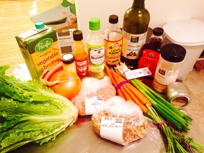 - Assemble lettuce wrap, starting with butter lettuce, then lentil mix, then carrots and green onion, and topping with sesame seeds.