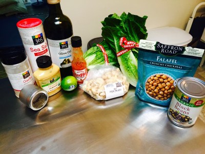 - Drain and rinse black beans and pour them into the bowl along with the crunchy chickpeas