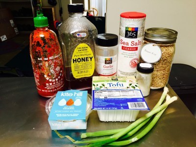 - Dice green onion and serve over top of the rice, tofu, and almond feta