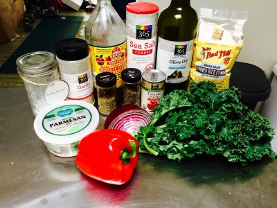 - Dice kale, red onion, and bell pepper