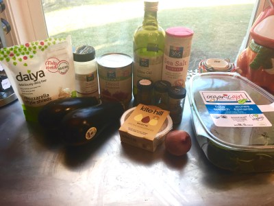 - Cut eggplant into long thin slices and place on baking sheet, drizzling with half of olive oil, and baking for 15 minutes