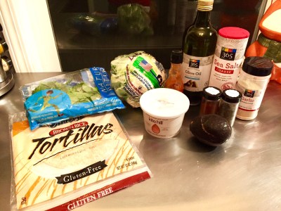 - Assemble tacos bowls, starting with tortillas, then spinach, cauliflower, other half of hot sauce, and diced avocado and yogurt