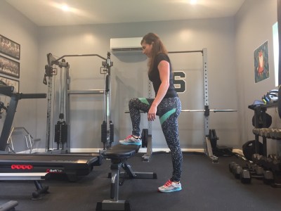 Place one foot up on a bench, chair, stair, or whatever else you have available.