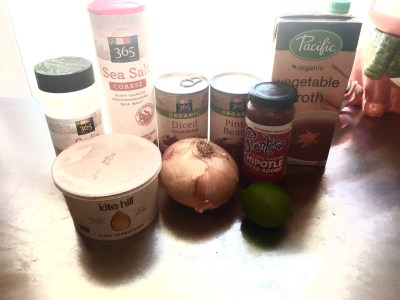 - Dice onion and add into pot with chipotle sauce, oregano, and pepper and bring to a simmer for 15 minutes