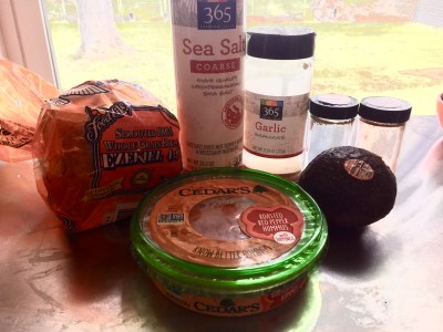 - Mix together avocado, garlic powder, chili powder, and sea salt and spread over hummus