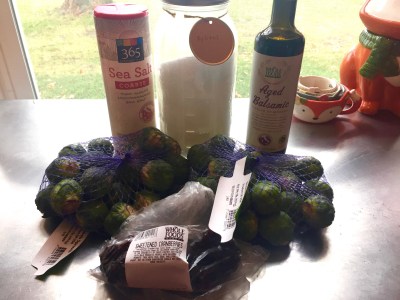 - In a small saucepan, add together balsamic and xylitol and let reduce over medium-low heat and let reduce while the brussels cook