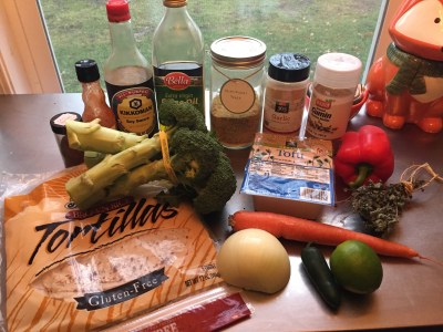 - Place veggies and tofu on top of tortillas and top with hot sauce and lime juice