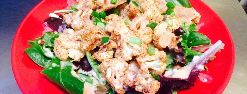Firecracker (Bang! Bang!) Cauliflower Serves 4 - 280 Calories Per Serving - 14g fat/31g carbs/11g protein Ingredients 1 Head Cauliflower 3/4 Cup Almond Flour 1/2 Cup Tapioca Flour 1 Tsp Paprika 1 Cup Water 4 Cups Mixed Greens 4 Green Onions 1/4 Cup White Wine Vinegar 1/4 Cup Water 1 Tsp Garlic Powder 1 … Continue reading Firecracker (Bang! Bang!) Cauliflower