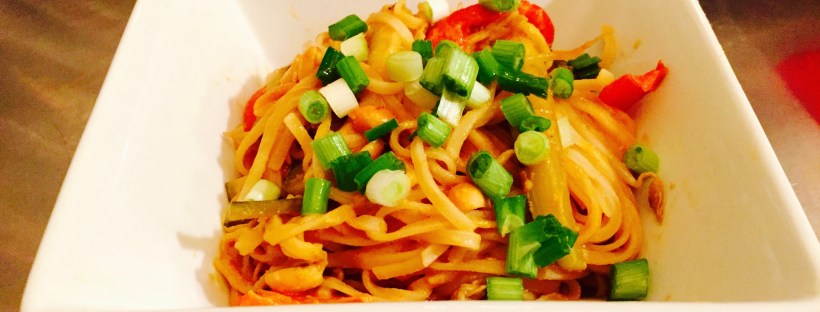 Miso (Hungry) Pad Thai Serves 4 - 430 Calories Per Serving - 19g fat/55g carbs/13g protein Ingredients 1 T Olive Oil 1 Red Bell Pepper 1 Zucchini 1 Cup Bean Sprouts 1 Container Brown Rice Pad Thai Noodles 1/2 Cup Peanuts 5 Green Onions 2 Limes 1/4 Cup Sunflower Butter 1 T Liquid Aminos 1 … Continue reading Miso (Hungry) Pad Thai