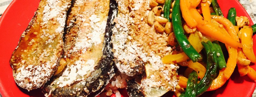 Baked Japanese Eggplant with Stir Fry Serves 3 - 530 Calories Per Serving - 15g fat/85g carbs/22g protein Ingredients 2 Eggs 3/4 Cup Brown Rice 1 Orange Bell Pepper 2 Cups Green Beans 1 Eggplant 1 T Olive Oil 1/4 Cup Peanuts 3/4 Cup Chickpea Crumbs 1/2 Cup Tapioca Flour 1 T Rice Wine … Continue reading Baked Japanese Eggplant with Stir Fry