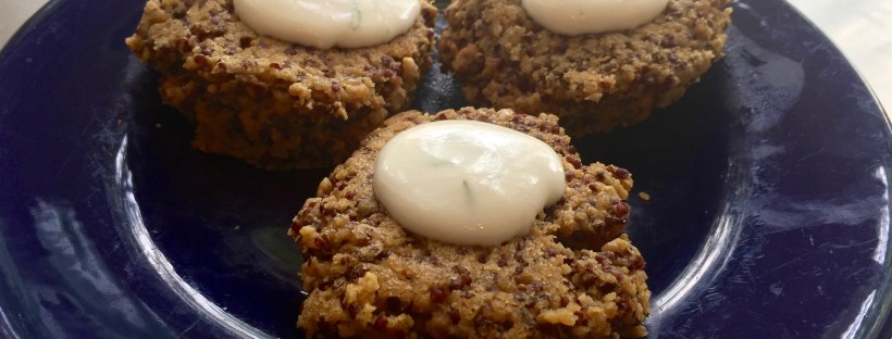 Herby Quinoa Cakes with Dill Dressing Serves 3 - 500 Calories Per Serving - 24g Fat/56g Carbs/12g Protein Ingredients Olive Oil Spray 2 Cups Oat Flour 1 Tsp Baking Powder 1/2 Tsp Pepper 1 Tsp Garlic Powder 1 Tsp Cumin 1 Tsp Paprika 1 T Fresh Dill 1/2 Cup Quinoa 1/4 Cup Olive Oil … Continue reading Herby Quinoa Cakes with Dill Dressing